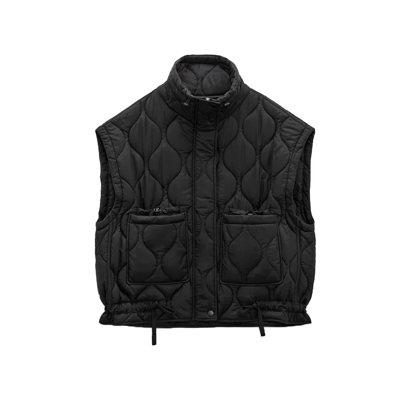 Women's Autumn New Patch Pocket Stand-up Collar Sleeveless Padded Vest Coat Warm Cotton Tank Coat Female Padded Waistcoat