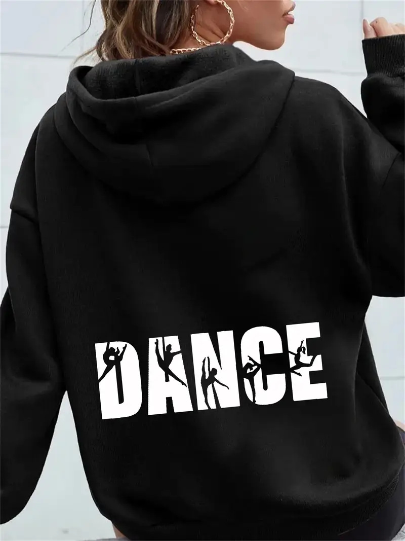 Women's Hooded Sweatshirt DANCE Fashion Letter Print Casual Versatile Trendy Sweatshirt Jacket