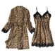 Nuisette femme à imprimé léopard - Nuisette sexy en fausse soie avec bordure en dentelle (Léopard jaune, S/M/L/XL/XXL/XXXL)