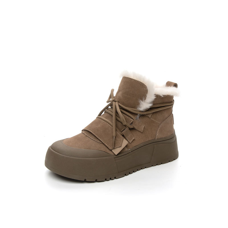 Chaussures pour femmes en cuir de vache givré et velours, bottes de neige à semelles épaisses et chaudes pour femmes, nouvelles chaussures montantes décontractées tout-match pour l'hiver