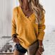Pull de couleur unie pour femmes, col en v, manches longues, haut